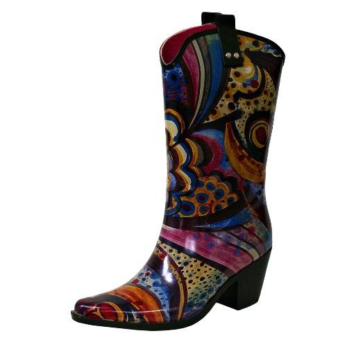 Art Deco Cowboy Style Rubber Rain Boots Size 6 Review